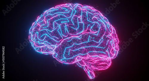 Abstract Neon Brain Digital Neuroscience AI and Neural Network Concept