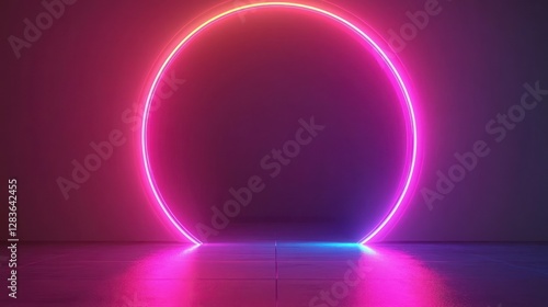 Abstract Neon Circle Glowing with Vibrant Pink and Blue Reflections