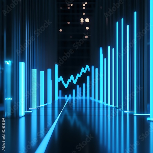 Abstract Neon Corridor Displays Financial Growth Charts
