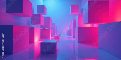 Abstract Neon Cube Corridor A Futuristic Vision of Geometric Shapes Illuminated with Vivid Pink and Blue Lighting