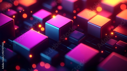 Abstract Neon Geometric Background, 3D Render