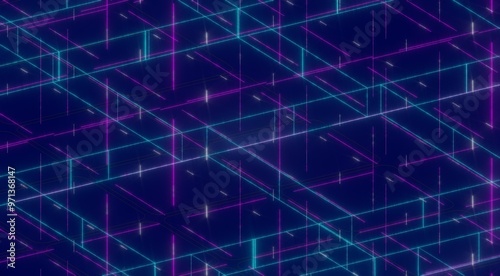 Abstract Neon Grid Pattern with Vibrant Colors and Depth