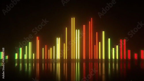 Abstract Neon Light Bars Reflection Dark Background