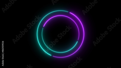Abstract neon light glowing circle frame loading icon background illustration.