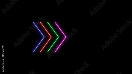 abstract Neon light sign Arrows of colorful light signal spreading with a black background. 4k illustration can be used, road, song, news paper, etc. illustration.