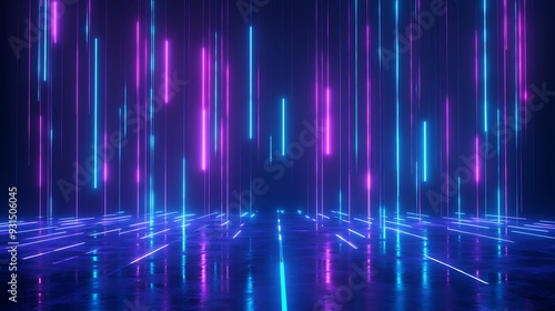 Abstract neon lights background with glowing blue and purple lines, creating a futuristic and vibrant visual effect.