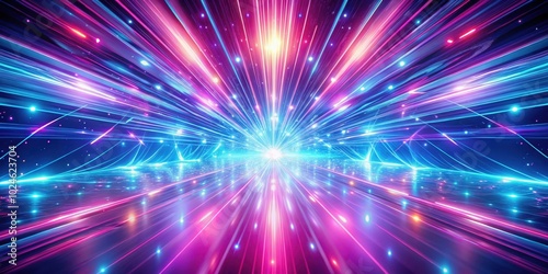 Abstract Neon Lines and Glowing Particles Converge at a Central Point, Creating a Dynamic and Energetic Visual Landscape