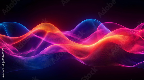 Abstract Neon Waves Digital Art Technology Futuristic Background Colorful Design Geometric Shapes Red Blue Pink Orange Dynamic Motion Flow
