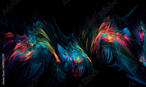Abstract neon waves flowers background. Psychedelic 3d rainbow streams of generative AI energy with lines of curvature and glow. Futuristic sound vibrations in bright gradient