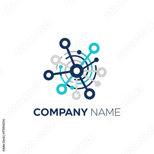 Abstract Network Connection Logo Design with Circles and Lines for Technology Company.