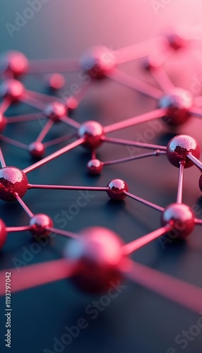 Abstract network connection visualization. Pink spheres and lines form a complex web, representing interconnectedness and communication.