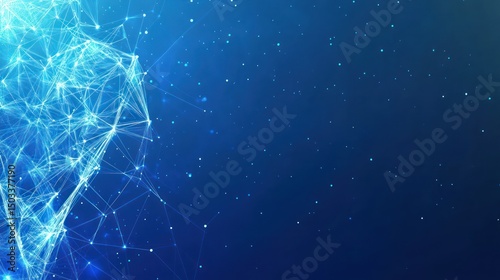 Abstract network graphic, light-blue, deep-blue, digital, polygonal, connecting lines, points, dots