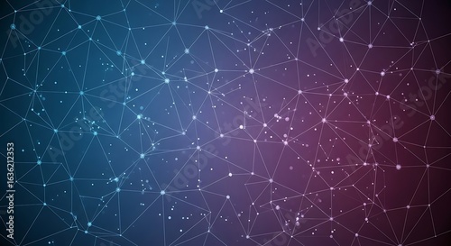 Abstract Network of Connected Dots and Lines with Blue to Purple Gradient Background