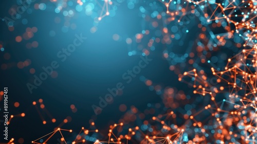 Abstract Network of Glowing Orange and Blue Nodes and Connections on a Dark Background