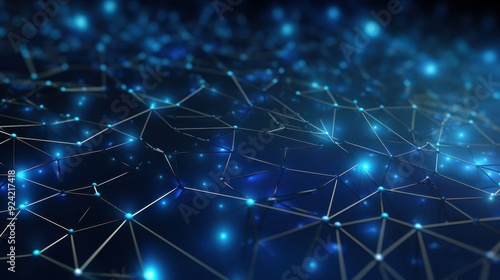 Abstract Network of Interconnected Nodes with Glowing Blue Lights