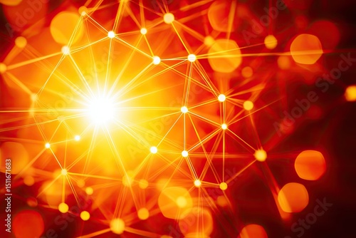 Abstract network radiating from a central point, vibrant orange and yellow hues