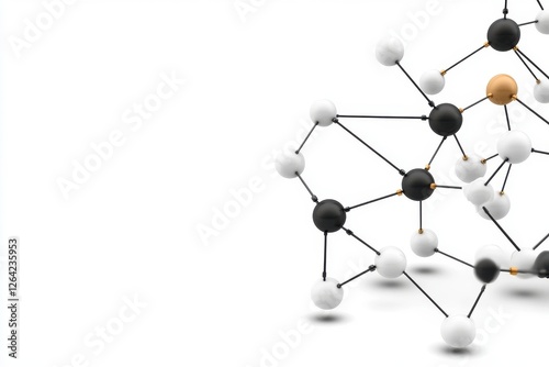 Abstract Network Structure with Black, White, and Gold Spheres