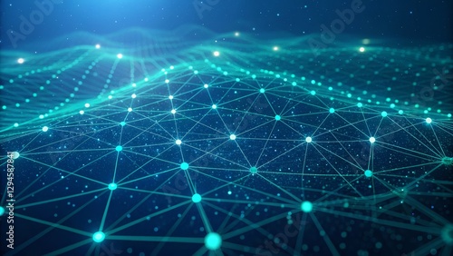 Abstract Network Teal Nodes, Connected Lines, Digital Landscape, Data Visualization Network, Connectivity