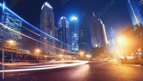 Abstract Night Lights of a Modern Futuristic Cityscape A Defocused Image Capturing the Enigmatic Glow of Neon Signs and Urban Life in a Dark Street Setting