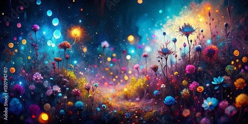 Abstract Night Paint Splatter on Floral Nursery Print - Dark Fantasy Art