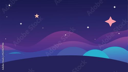 Abstract night scene with stylized landscape and sparkling stars illustration