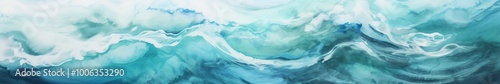 Abstract Ocean Waves Texture. Serene Aqua Blue and White Fluid Art Background