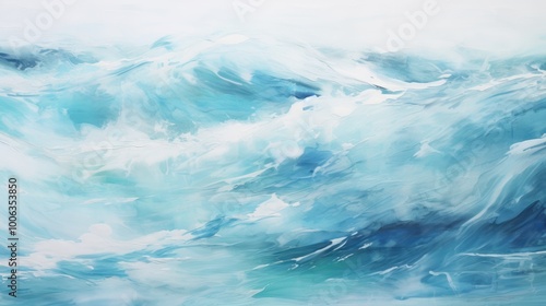 Abstract Ocean Waves Texture. Serene Aqua Blue and White Fluid Art Background