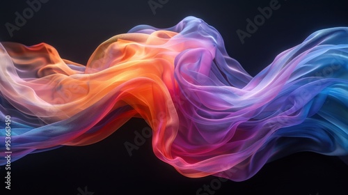Abstract of colorful flowing fabric on a black background