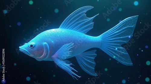 Abstract of fish double exposure in blue hues, surreal, creative concept, generative AI