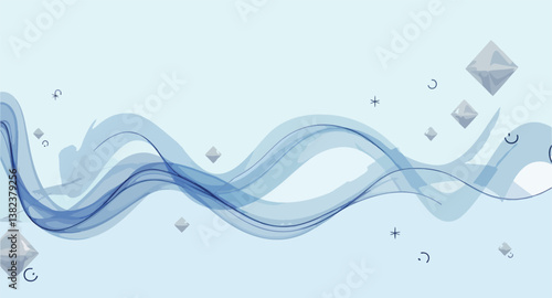 abstract of flowing blue waves and gray diamonds on a light blue background