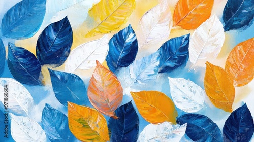 Abstract Oil Painting of Colorful Leaves on Canvas