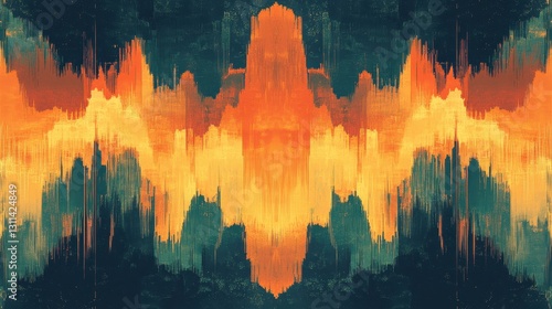 Abstract Orange and Yellow Digital Art with Dark Green and Blue Accents