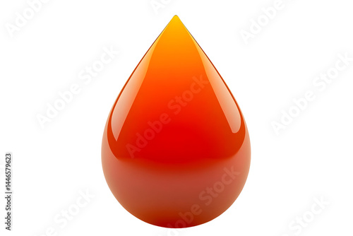 Abstract Orange Liquid Drop, Glossy, Vibrant, Isolated on White
