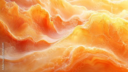 Abstract orange marbled background texture with a vibrant and lively atmosphere, perfect for design and art projects. The swirling wave patterns and bright colors evoke a sense of playful chaos...