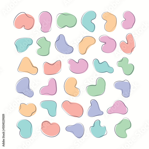 Abstract Organic Pastel Color Blob Shape Doodle Illustration Collection