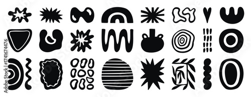 Abstract organic shapes monochrome line art with flowing forms, hand drawn