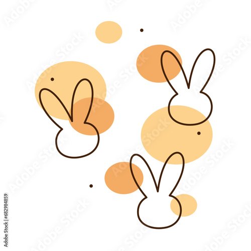 Abstract oval shapes with rabbits in doodle style. Clipart colored vector illustration.