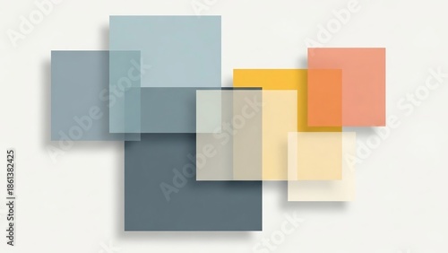 Abstract Overlapping Translucent Color Blocks on White Background.