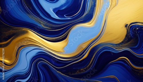Abstract paint background by deep blue and gold color with liquid fluid texture in luxury flowting materials