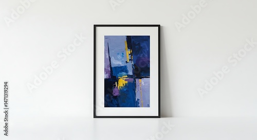 Abstract Painting in Frame Blue Purple Yellow