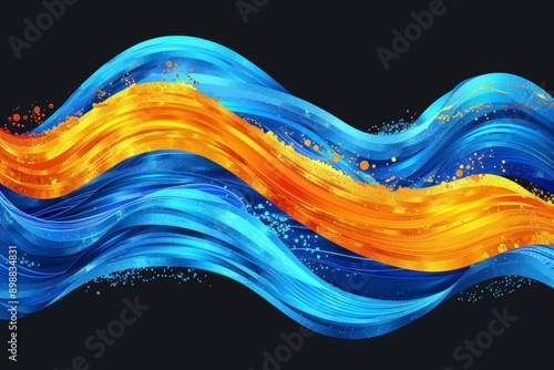 Abstract painting with fluid brushstrokes in blue and orange capturing movement and energy