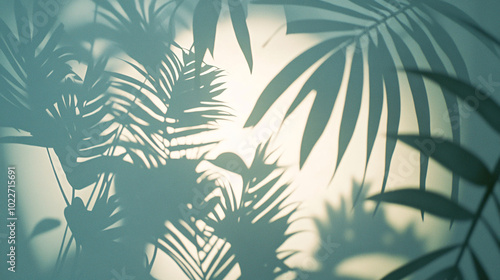 Abstract Palm Leaf Shadow On Light Blue Wall