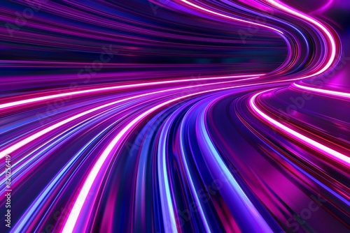 Abstract Panoramic Neon Background. Bright Purple Violet Pink Lines Glowing in Ultraviolet Light.