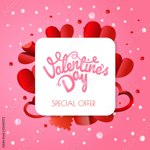 Abstract paper origami valentines special offer banner. Vector p