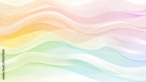 Abstract pastel background with smooth, flowing waves in shades of pink, yellow, green, and blue.
