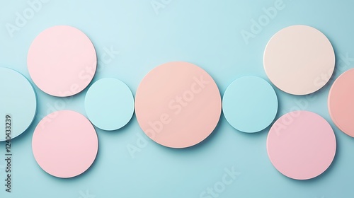 Abstract pastel circles arrangement on a soft blue background for creative design and artistic projects