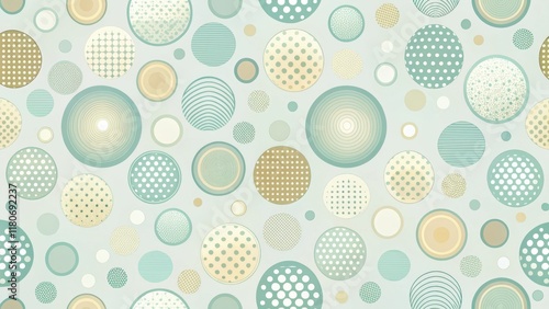 Abstract Pastel Circles Seamless Pattern Design A Delicate and Elegant Background Featuring Various Textured Circles in Soft Green and Beige Hues