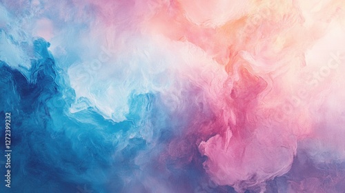 Abstract pastel cloud texture, blue and pink hues blend seamlessly. Ideal for websites, social media, or any design needing a dreamy, ethereal feel.