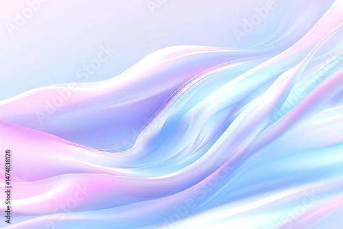 Abstract pastel flowing ribbons. Soft, smooth curves in light pink, light blue, and white. Delicate, fluid forms create a dreamy, ethereal effect