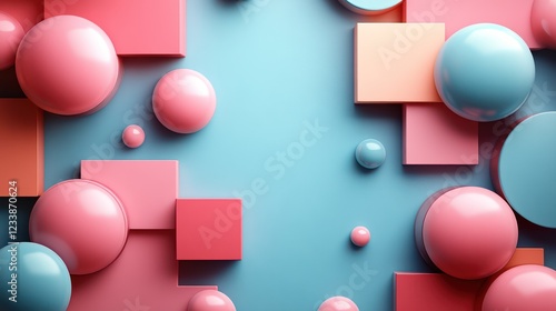 Abstract Pastel Geometric Composition: Pink, Blue, and Orange 3D Shapes